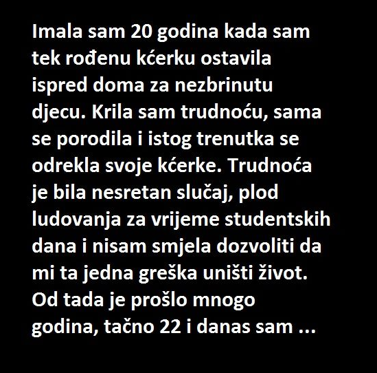 “Imala sam 20 godina kada sam tek rođenu kćerku ostavila ispred doma za nezbrinutu djecu.