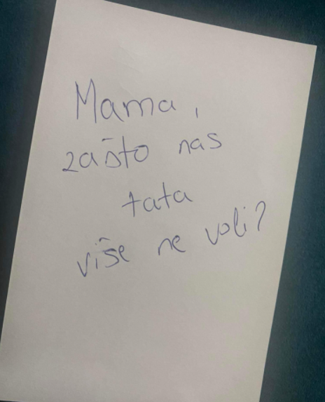 Ujutro čujem razgovor nje i sina kada ju je pitao mama zašto moramo ići, zašto nas tata vise ne voli? Odgovorila mu je tata tebe voli najviše na svijetu, ali više ne voli mamu pa zato moramo ići.