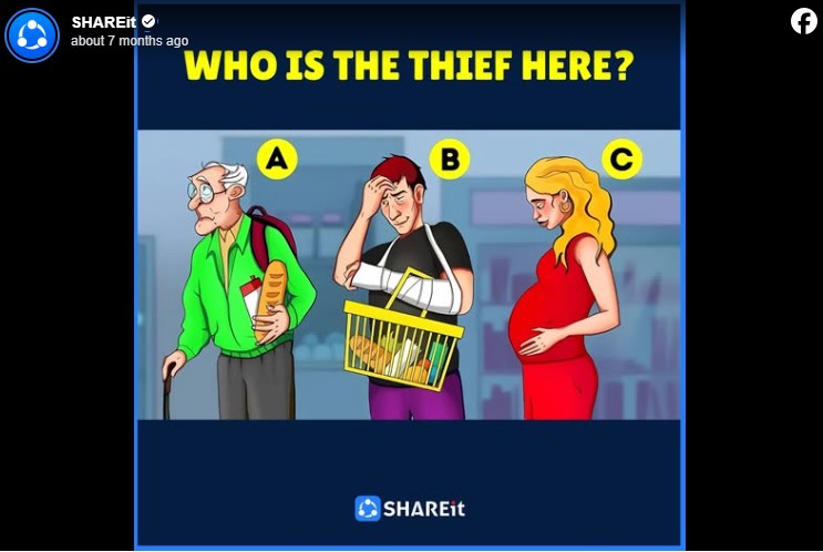 Da li ste shvatili? Lopov je čovek B sa slomljenom rukom. Pažljivijim posmatranjem se vidi da u istoj ruci drži tešku korpu, što ne bi bilo moguće da je zaista povređen.