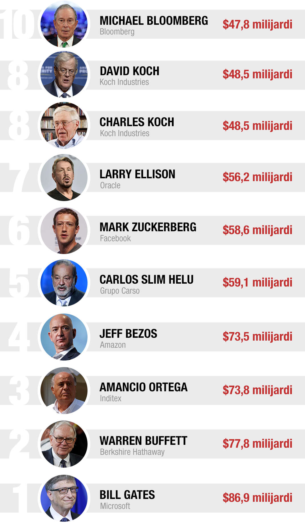 Već nekoliko godina na vrhu liste svjetskih milijardera je Bill Gates, suosnivač Microsofta, poduzetnik, programer i filantrop.