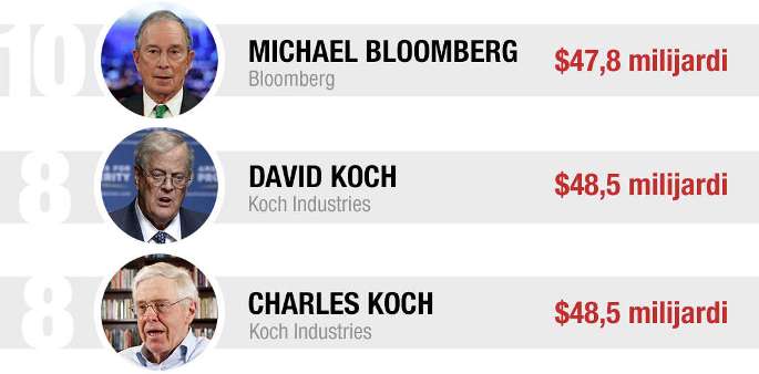 Na drugom mjestu, sa 77,8 milijardi dolara, najuspješniji je investitor u svijetu Warren Buffet.