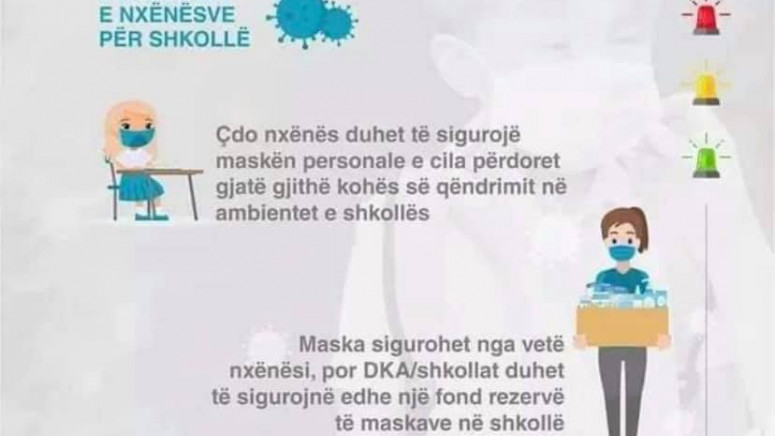 “Svaki učenik na Kosovu koji će sesti u školsku klupu ovog septembra mora da nosi zaštitnu masku, koju će morati da obezbede njihovi roditelji”, kaže se u preporuci NIJZK.