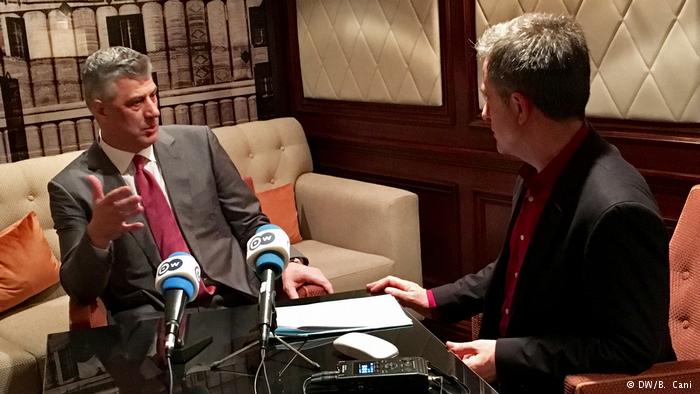 “Umjesto poziva iz Srbije na rat, pozivam kosovske Srbe na mir i dijalog. Umjesto poziva na etničke i teritorijalne podjele ja ih pozivam na učlanjenje u NATO i Evropsku uniju”, kazao je Thaçi za Deutsche welle.