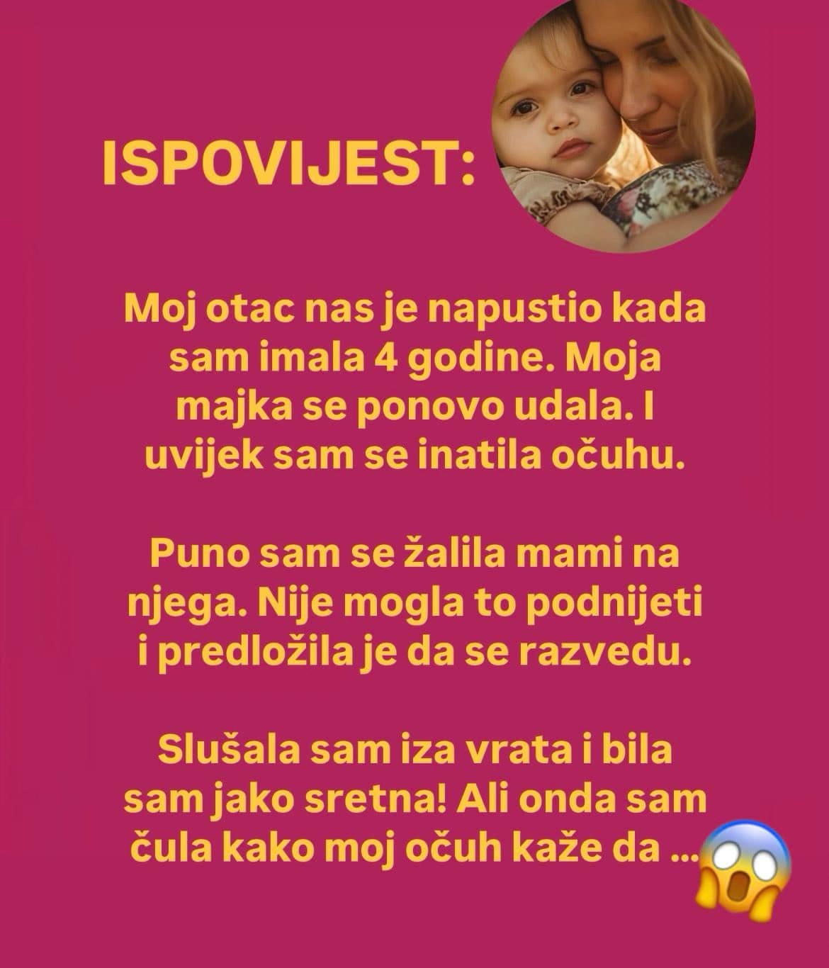 Slušala sam iza vrata i bila sam jako sretna! Ali onda sam čula kako moj očuh kaže da ne može živjeti bez nas i da će nam biti teško finansijski.