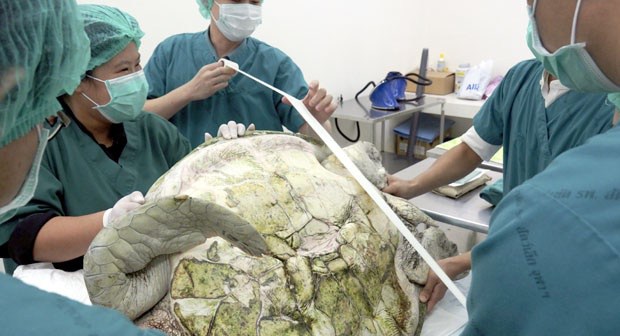 Tajlandski veterinari uspješno su uklonili 915 novčića iz kornjače teške 59 kilograma.