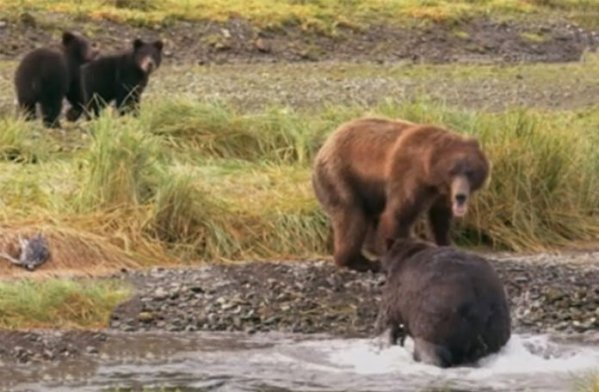 Ali, mama medvjedica je hrabro zaštitila svoju porodicu. Pokazala je mužjaku da ne može da se igra s njima, prenosi Index.hr.