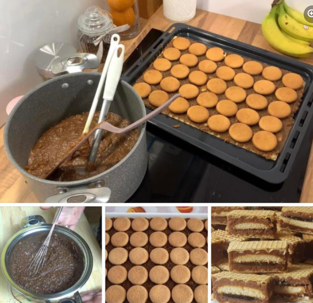 Napomena: ako fil ne bude dovoljno čvrst nakon dodatka keksa, ostaviti ga na hladno da bude još čvršći. Kolač mi je ostao preko noći na hladnom, opterećen drugim kolačima, sutradan sam ga sekla skalpelom. Za širinu štanglice sam uzimala 4 kvadratića (ona manja) a dužina oko 13-14 kvadratića