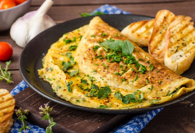 Poslužite omlet sa tostom, po želji dodajte kašičicu pavlake ili krem sira na vrh omleta.
