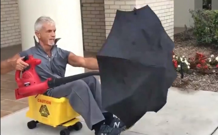 Kreativac sa Floride kombinirao kantu za čišćenje, mašinu za raspuhivanje lišća i kišobran.