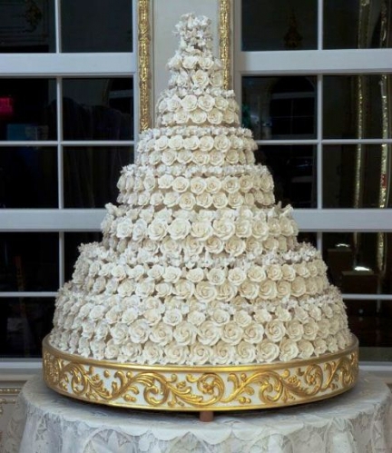 Originalna torta imala je sedam spratova i navodno je koštala oko 50.000 dolara, a težila je oko 100 kilograma. Bila je ukrašena sa oko 2.000 različitih jestivih cvjetova.
