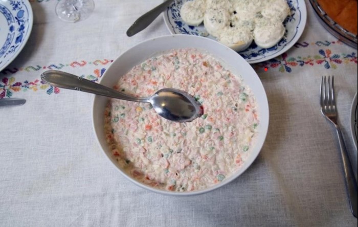 Jasno je da se brzo živi i da je svaka ušteda vremena dobrodošla, ali zamrznuto povrće nije adut za uštedu vremena jer ruska salata sa njim ima bljutav ukus i to jednostavno nije to.