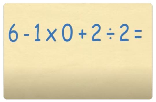 Potrebno je da kažete rešenje zadatka: 6 – 1 x 0 + 2 ÷ 2 = ?