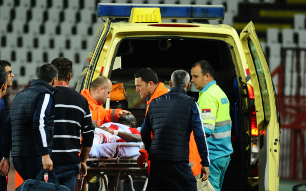Crvena zvezda je s 5:0 pobijedila Dinamo Vranje u Beogradu, a 24-godišnji igrač Zvezde Abraham Frimpong nezgodno je pao, udario glavom i ostao nepomično ležati.