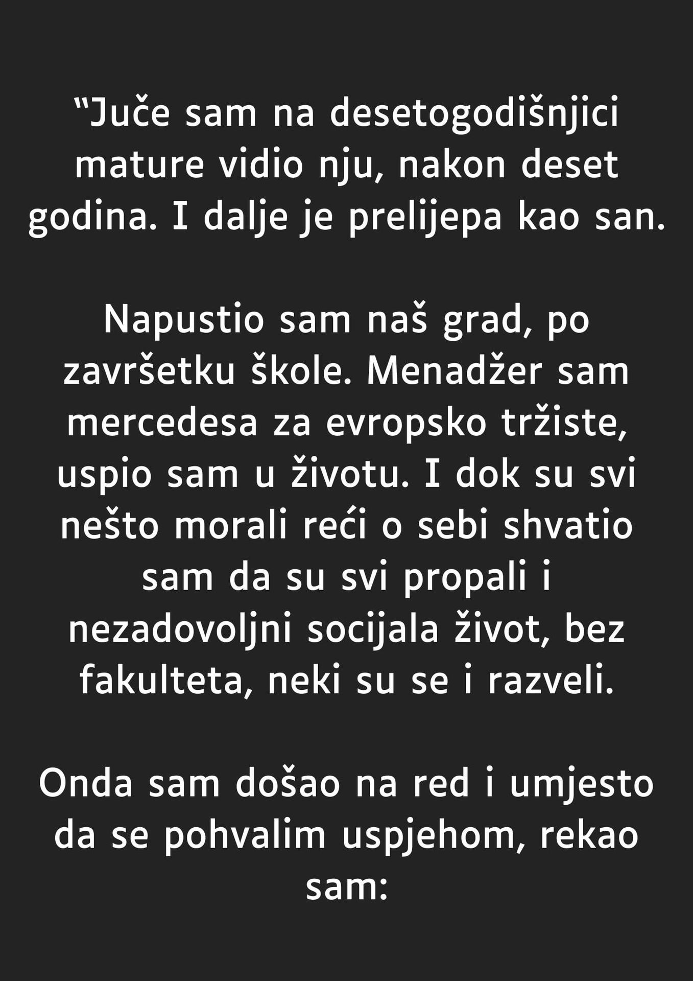 “Juče sam na desetogodišnjici mature vidio nju, nakon deset godina. I dalje je prelijepa kao san.