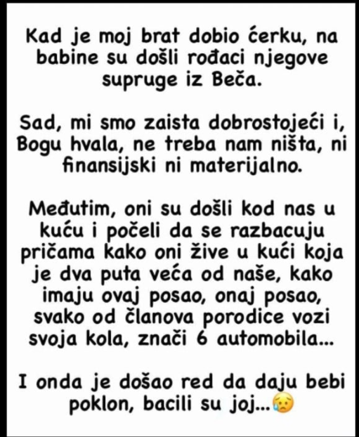 Kad je moj brat dobio ćerku, na babine su došli rođaci njegove supruge iz Beča.