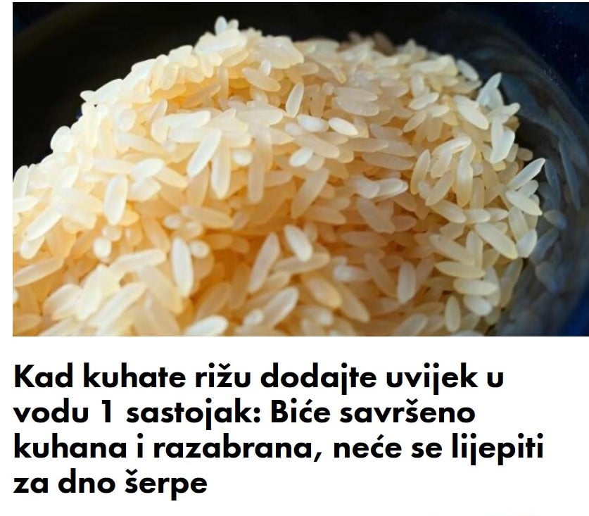 Stoga, ako vam riža do sada nikako nije uspijevala ili ako ste početnik u kuhanju, slhedeći put iskoristite ovaj trik i budite sigurni da će dobro ispasti, piše Krstarica.