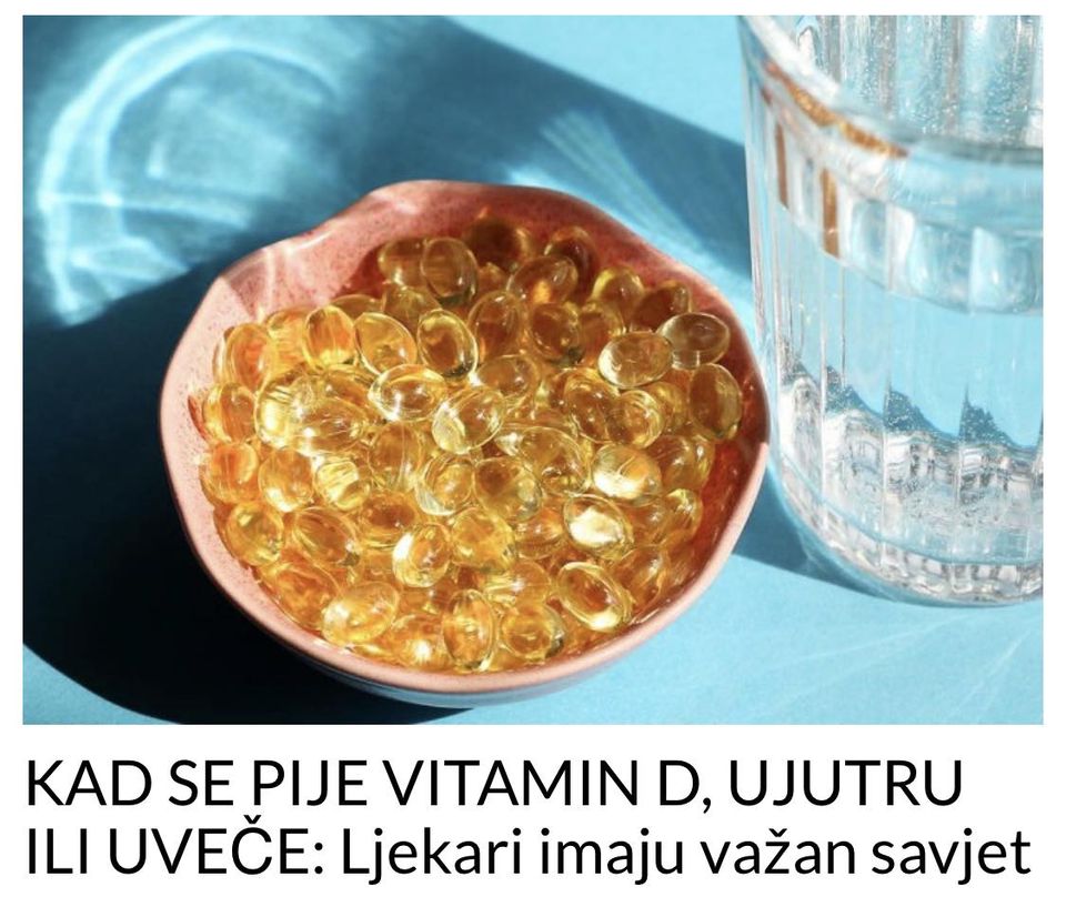 Pored sunca i ishrane, izvor vitamina D su i suplementi, a mnogi su u dilemi da li ih je bolje uzimati ujutru ili uveče. Prema savjetima stručnjaka, vitamin D bi trebalo uzimati uz obrok jer je rastvorljiv u masti, što znači da djeluje efikasnije kada se uzima sa hranom.