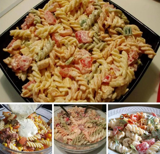 Tjesteninu skuhajte u slanoj vodi, a povrće narežite na kockice. Još toplo meso i tjesteninu pomiješajte, dodajte povrće.