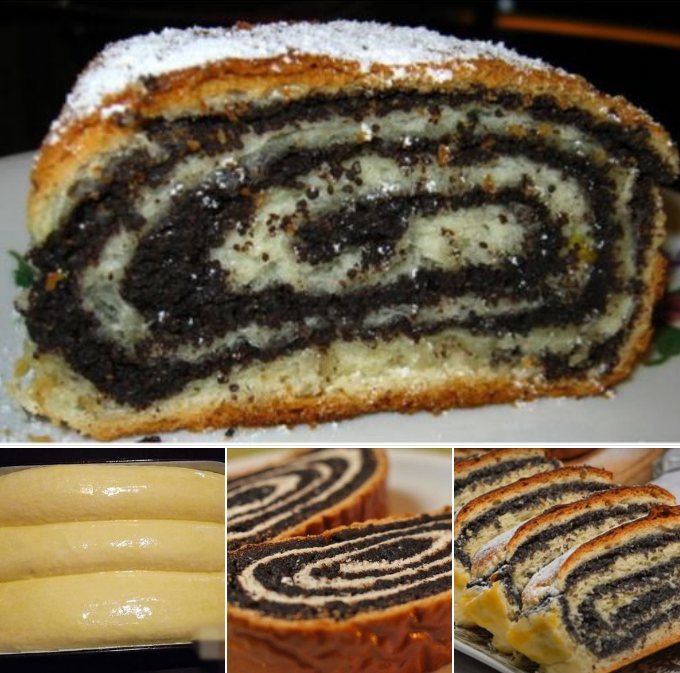 3.Pustite da nadolazi.4.Podijelite na 4 dijela. Razvaljajte pravougaonik u širini pleha od peći. Svaki dio tijesta posebno filujte.5.Svaki fil se pravi na isti način, npr. u mljeveni mak se doda šećer i zalije vrelom vodom; ne smije biti prerijetko. Premažite, urolajte i po širini nauljenog pleha poredajte 4 štrudle.6.Pecite na 220’C dok lijepo porumeni i zamiriše cijela kuća, oko 30 minuta.Izvadite iz pećnice, prekrijte krpom i ostavite da se hladi. Pospite šećerom u prahu.