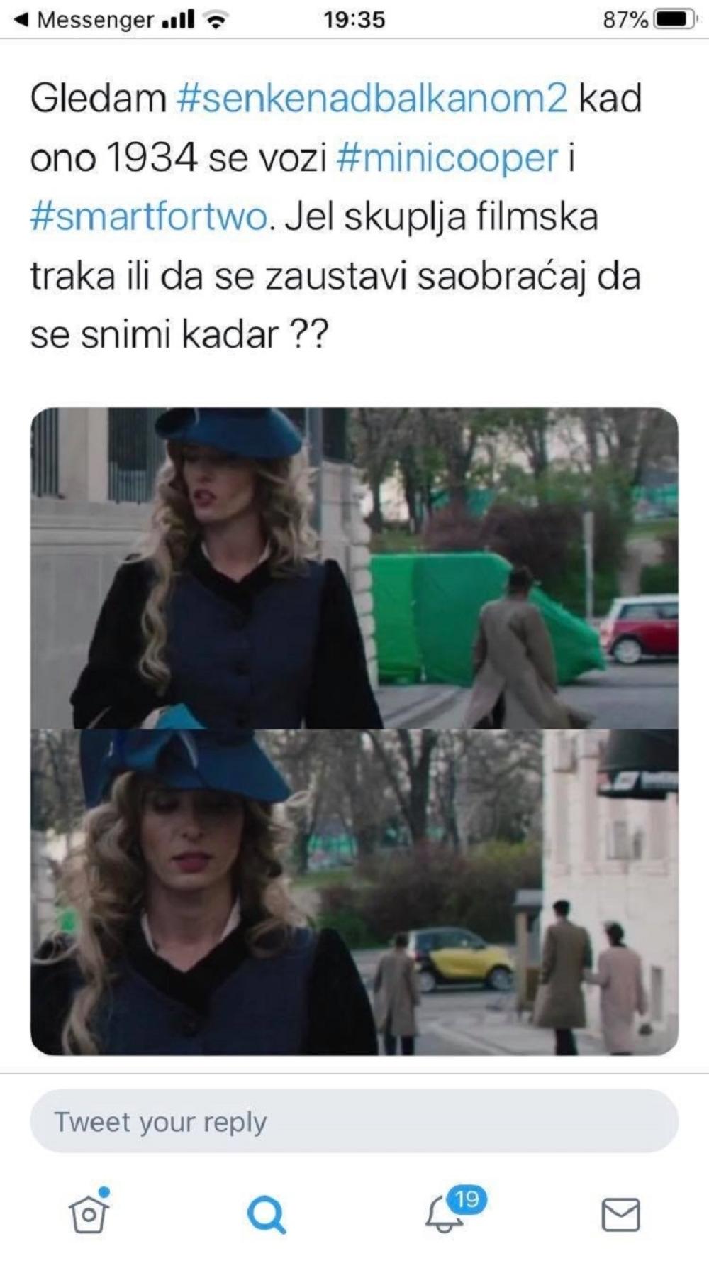 „Gledam Senke nad Balkanom 2, kad ono 1934. godine se vozi Mini Cooper i Smart. Je l` skuplja filmska traka ili da se zaustavi saobraćaj da se snimi kadar“, napisao je nezadovoljni fan.