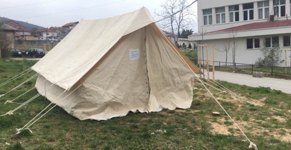 U regionalnoj bolnici u Prizrenu, u blizini Klinike za zarazne bolesti, postavljeni su šatori za pregled pacijenata za koje se sumnja da imaju simptome koronavirusa.