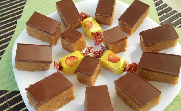 Priprema:Šećer i jaja kuvajte na pari dok se šećer ne otopi.Zatim dodajte lešnik karamele.Kada se i one otope dodajte margarin.Dodajte i mleveni plazma keks.Smesu izlijte u pouljen pleh i ostavite da se malo stegne.Čokoladu otopite sa 5 kašika ulja i prelijte preko.Secite na štangle i služite.