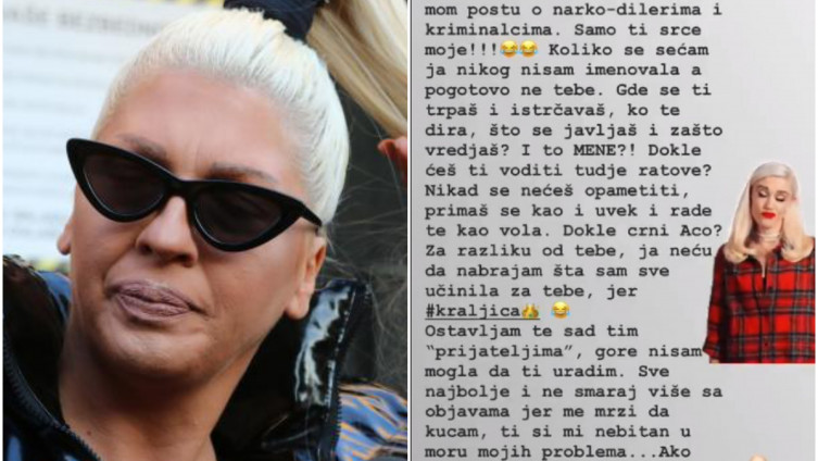 Naime, pjevačica je u svojoj “priči” državu u kojoj živi nazvala “banana državom Srbijom”, a ljude koji se sa prijateljima zabavljaju na sopstvenim proslavama nazvala narko-dilerima i kriminalcima. Da ovo bude malo, nastavila je sa uvredama Ace Lukasa, Svetlane Cece Ražnatović i njene ćerke Anastasije Ražnatović. Na ovo je pjevač ostavio odgovor takođe na društvenoj mreži, pozdravljajući nekadašnju prijateljicu riječima da više “nisu prijatelji”.