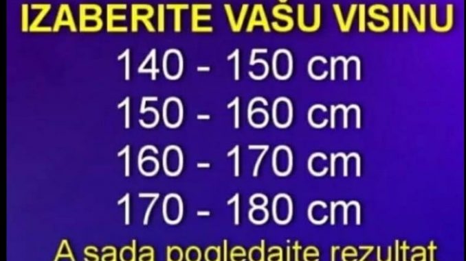 Potrebno je samo izabrati svoju visinu i pogledati rezultat ispod:
