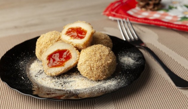 Operite krompir pa ga skuvajte u ljusci. Onda ga oljuštite pa ga izgnječite kao pire. Umešajte 2 šolje brašna pa zamesite testo. U šerpu sipajte tri litra vode, pa ostavite da proključa. Rukom napravite loptice od testa. Spljoštite svaku pa u sredinu stavite kašičicu džema.
