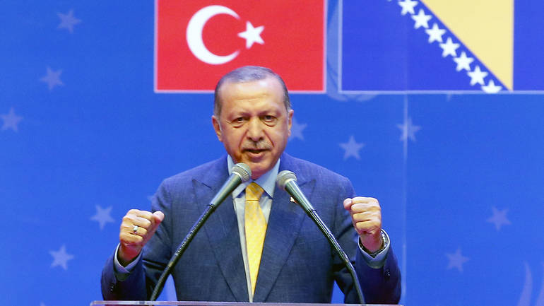 Turski predsjednik Recep Tayyip Erdogan doputovao je u nedjelju u radnu posjetu Bosni i Hercegovini. Na Međunarodnom aerodromu Sarajevo dočekali su ga predsjedavajući Predsjedništva BiH Bakir Izetbegović, njegova supruga Sebija Izetbegović, predsjedavajući Vijeća ministara BiH Denis Zvizdić, te ambasador Turske u Sarajevu Haldun Koc.