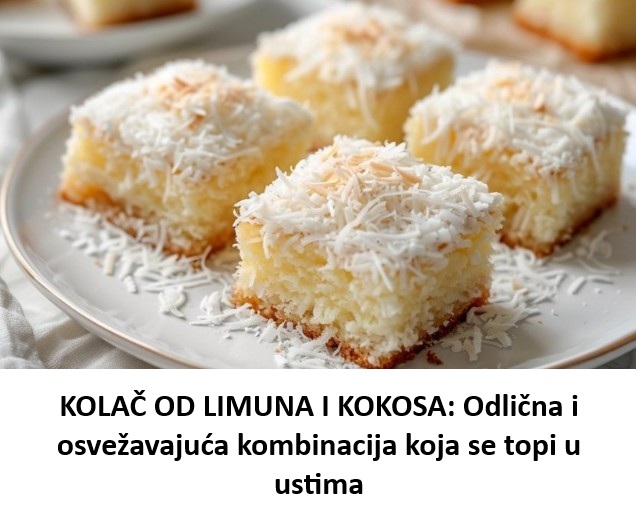 - Pečen kolač ohladiti i pre služenja posuti šećerom u prahu i kokosom.