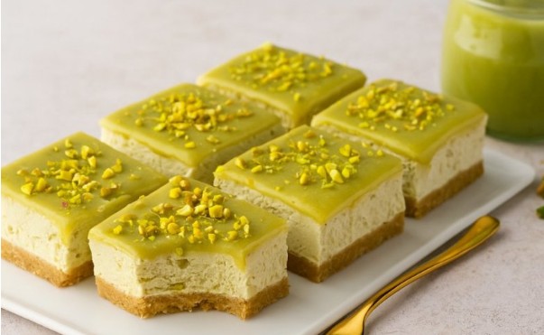 Podloga: Otopite maslac, pomešajte ga sa mlekom i mlevenim keksom. Dodajte seckane pistaće i utrljajte smesu u kalup za kolač.