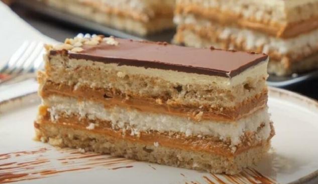 Na tacnu staviti prvu koru isprskati je mlekom, sačekati da upije pa namazati pola krema. Preko staviti kokos koru, isto je isprskati mlekom pa pemazati ostatkom krema. Preko staviti orah koru i ostaviti sve malo u frižider kako bi se stegnulo.