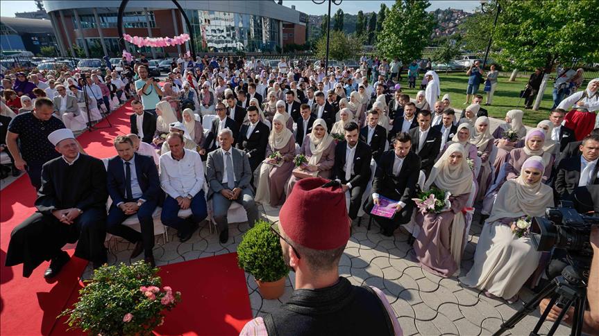Medžlis Islamske zajednice Sarajevo je u saradnji s humanitarnom organizacijom MFS-EMMAUS i njihovim partnerima iz Ujedinjenih Arapskih Emirata (UAE) ispred Istiklal džamije na Otoci organizirao kolektivno vjersko vjenčanje, javlja Anadolu Agency (AA).