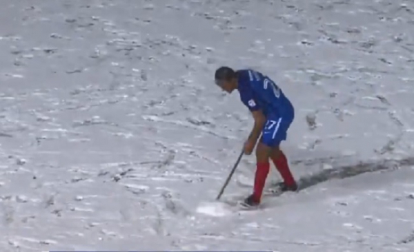 Međutim, domaćin je dao sve od sebe da se susret ipak okonča. Igrači i osoblje kluba uzeli su lopate i sklanjali snijeg sa terena, što je izazvalo oduševljenje na tribinama.