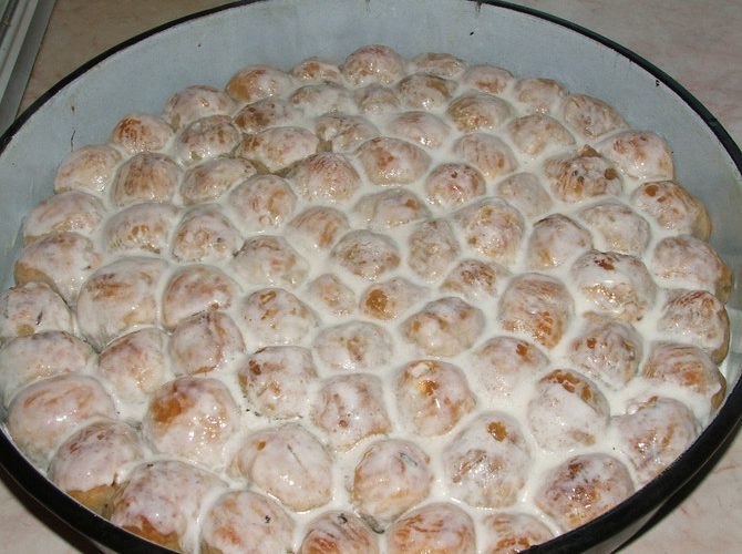 Sastojci:Za testo:600 g brašna,1 jaje,2-3 dl mlake vode,1 kašika ulja,2 kašičice soli.Za fil:500 g mlevene junetine,1 glavica crnog luka,ulje,so,biber,slaka paprika.Preliv:1 čaša jogurta,1 čaša kisele pavlake,2-3 čena belog luka,100 g margarina3 kašike ulja.