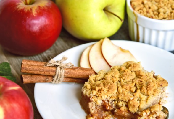 Priprema:Jabuke ogulite i iseckajte na kockice. Stavite ih u okrugli pleh, naspite malo vode i pospite cimetom.Brašno, šećer, cimet, zobene pahuljice i maslac – sve zajedno lagano umesiti, dok se ne naprave mrvice i krambl stavite preko jabuka.