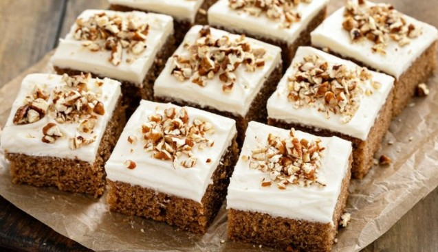 Slaganje: Na pleh staviti prvu koru, pa naneti polovinu fila i poravnati. Pokrijte drugom korom, premažite ostatkom fila i pospite mlevenim orasima. Kolač staviti u frižider da se ohladi i stegne, pa ga iseći na kockice.