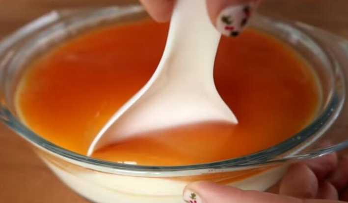 U tiganj sipajte 90 grama šećera i stavite na tihu vatru da se istopi. Kada dobije zlatnu boju, u šećer dodajte 100 mililitara vode, izmešajte i u to dodajte mešavinu kukuruznog skroba i vode koju ste pripremili. Ponovo sve izmešajte i ostavite na vatri dok karamel preliv ne postane gušći.