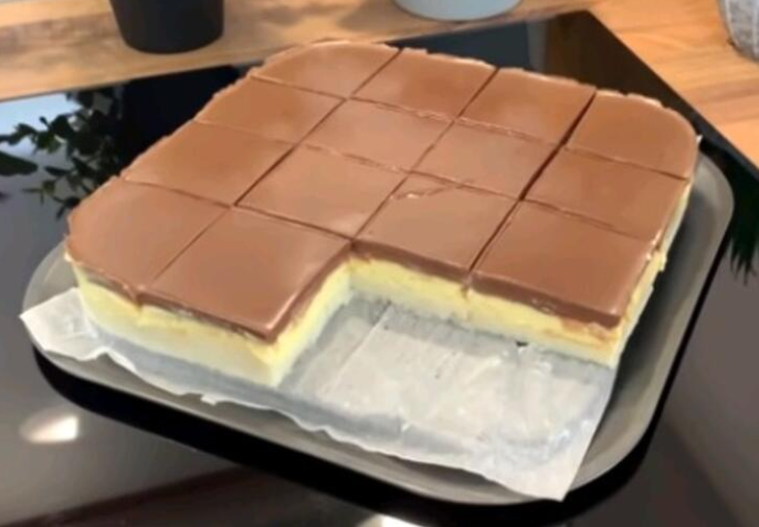 Priprema: Za podlogu ili prvi deo skuvajte griz od mleka, šećera i griza. Potom razlijte griz u četvrtasti kalup.