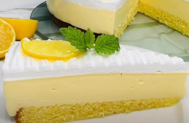 Smjesu izlijte u pripremljeni kalup i pecite 10 – 12 minuta dok biskvit ne dobije zlatnu boju. Ostavite da se ohladi. Pripremite kremu. U posudi pomiješajte žumanjke, šećer, vanilin šećer i gustin. Polako dodajte malo mlijeka (od ukupnih 500 ml) kako biste dobili glatku smjesu. Ostatak mlijeka zakuhajte. Kada mlijeko zakuha, polako ulijte smjesu sa žumanjcima, neprestano miješajući dok se ne zgusne. Maknite kremu s vatre i umiješajte limunov sok i koricu limuna.