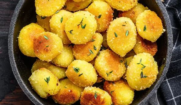 Zagrijte pećnicu na 200°C. Namažite posudu za pečenje maslacem ili uljem. U velikom loncu zakuhajte vodu. Postupno dodajte kukuruznu krupicu, stalno miješajući pjenjačom dok se sve ne sjedini i smjesa ne postane gusta. Umiješajte 1/4 šalice feta sira, žličicu soli i papra.