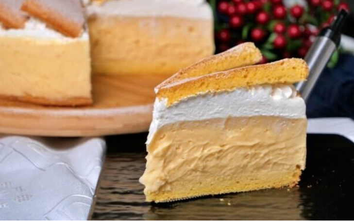 Poravnate i prekrijete folijom ili kesom i ostavite da se hladi. Mlako stavite u frižider još par sati.Za koru uključite rernu na 180 stepeni.Ulupati belanca sa šećerom u čvrstu penu, dodati žumanca, pa ulje i na kraju brasno i prašak za pecivo i sve sjediniti.Istresti u obložen pleh 26cm i staviti da se peče oko 20 minuta.