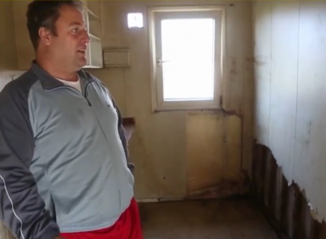 Petar Tunić (43) iz barake je izašao u papučama jer nema novca da sebi kupi cipele. Dobio je pola barake u kojoj spava sa ženom, sinom i kćerkom. Nedavno je zamolio nadležne da mu udjele i drugi dio barake da bi ga uredio za porodicu.