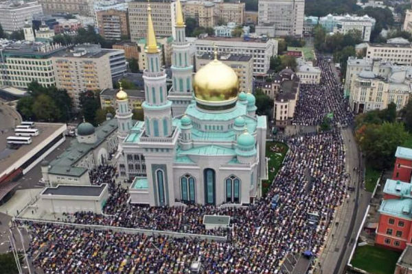 Ispred najvećeg vjerskog objekta muslimana u glavnom gradu Rusije – Moskovske saborne džamije – klanjale su desetine hiljade vjernika.
