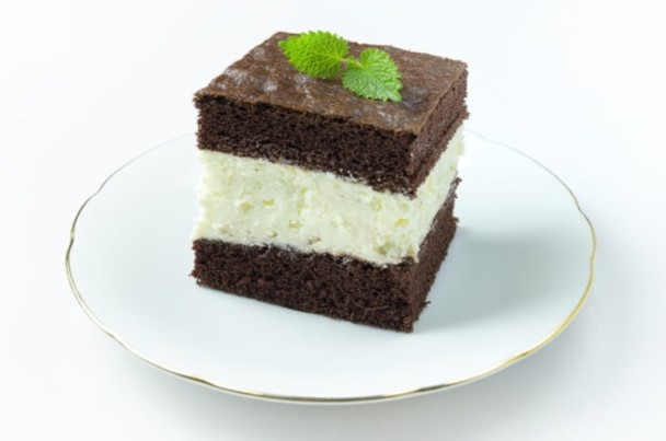 Kolač ohladite u hladnjaku najmanje 2 – 3 sata prije rezanja. Režite oštrim nožem umočenim u vruću vodu kako bi kocke bile uredne.