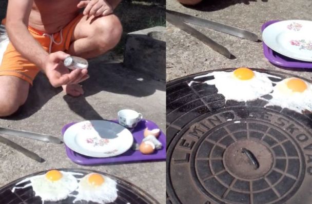 Visoke temperature koje su posljednjih nekoliko dana zabilježene u regionu teško podnose mnogi stanovnici, dok drugi pronađu način da se zabave. Jednom Leskovčaninu palo je na pamet da na poklopcu šahta, koje prvo podmaže, isprži jaje, posoli i spremi obrok za mačke.