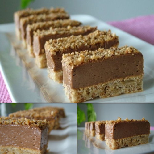 Premazati preko ohladjene kore i odozgo posuti sa 30-ak grama mlevenih pecenih lesnika. Ohladiti.