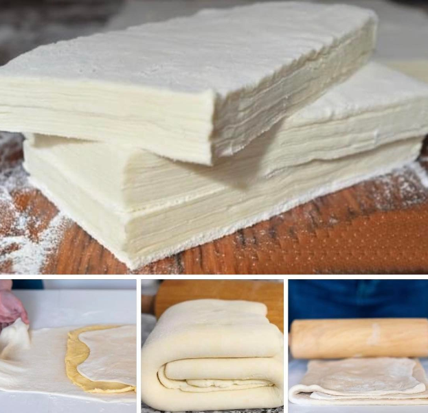 Opet razvaljati u pravokutnik i ponoviti preklapanje u 3 sloja. Malo ostaviti da odleži na hladnom, pa razvaljati i koristiti ili razrezati na 4 dijela i staviti u led.