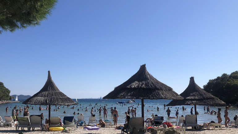 Umesto teretane, odlazimo na jednu od paznatijih plaža u Zadarskoj županiji. Zapravo resort koji prima od 1500 do 2000 ljudi. Na ulazu nam mere temperaturu. Radoznalo pitam, šta se dešava sa gostima koji imaju temperaturu. Službenica sa maskom ispod nosa mi odgovara, da oni sa temperaturom malo sačekaju na ulazu, dok im ista ne spadne, pa onda uđu.